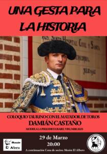 COLOQUIO TAURINO CON DAMIÁN CASTAÑO(TORERO)-NAVARRETE Horario del evento: 20:00h Mas información ⇐ Fecha Mar 29 2025 Finalizdo! Hora 20:00 Localización Navarrete La Rioja Categoría Evento Organizador Ayuntamiento de Navarrete